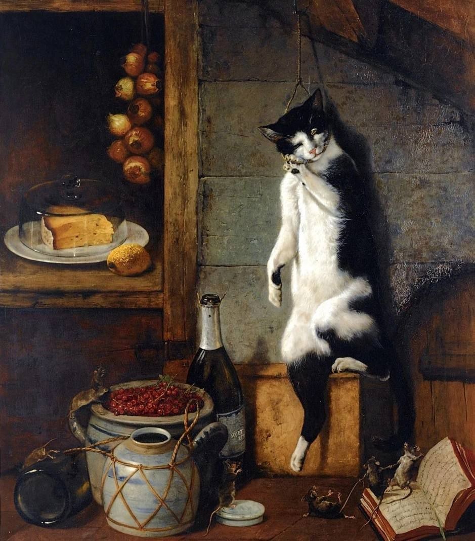Шарль Верл «Несчастный кот», 1869 Кот с несчастным видом засовывает голову в петлю, один глаз у него прикрыт, вторым же хвостатый хитрюга внимательно наблюдает за происходящим — ведь с пола на кота уставились несколько мышей, которые не верят своим глазам. Самый злейший враг, который не давал им спокойно жить, сам лезет в петлю. Но можно увидеть, что кот придерживает петлю и выжидает удобный момент, пока мыши потеряют бдительность. Вот тогда-то хитреца поджидает неплохой улов. Отличного дня желают вам кошки приюта МурМяу! #приютмурмяу #бездомные_кошки_ищут_дом Подпишитесь на канал нашего приюта МурМяу