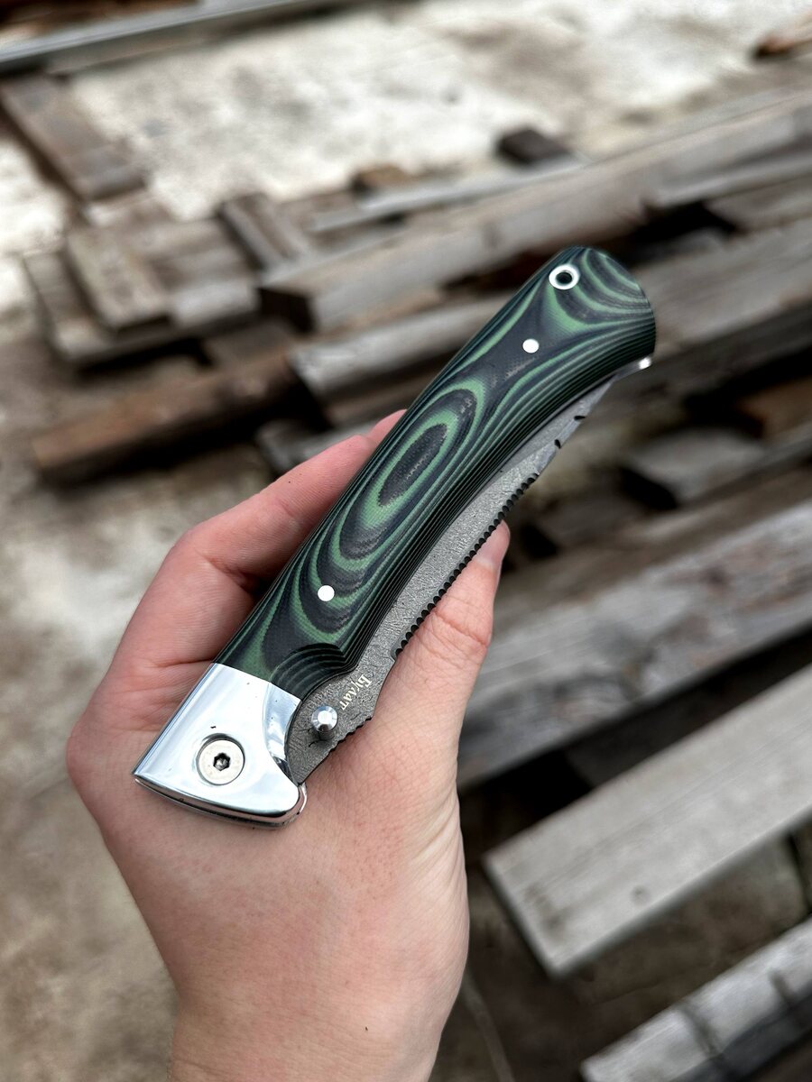 🆕 НОВИНКА! Складной нож «Рыбак» — надёжность для настоящего добытчика! Тигельный булат с криообработкой — держит заточку дольше обычного, агрессивно режет, не боится излома и суровых походных условий. Это именно та сталь, которой доверяют профи. Уникальные фишки для рыбака 🔪 *Серрейтер на обухе* — легко снимает чешую 🎣 *Экстрактор* — быстро извлекает воблер из пасти трофея Удобно, быстро, безопасно! Комфорт и надёжность в каждой детали — *Накладки из G10*: неубиваемый, нескользящий материал, приятный на ощупь — *Анатомическая форма рукояти*: не выскальзывает из мокрой руки — *Хищная заточка*: острота — как у бритвы Твердость клинка: 64-65 HRC — гарантирует долгую службу и отменный рез Цена: 13.200 ₽ В комплекте — ножны из натуральной кожи. *Хотите премиум?* Сделаем формованные ножны под заказ — всего +8000 ₽. Закажите сейчас: ✉️ [@Nazarklinokbot](https://t.me/Nazarklinokbot) 📱 +7 910 134-38-31 *(WhatsApp/Viber)* #НожРыбак #рукоделие #КузницаНазарова #ручнаяработа #рыбалка #подар