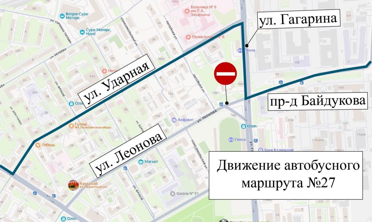 В Пензе изменится маршрут автобуса № 27: опубликована схема движения