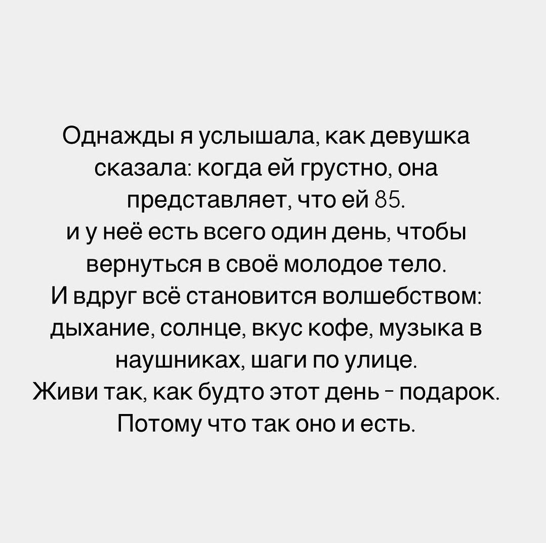 🎞️🎞️.🎞️🎞️.🎞️🎞️🎞️🎞️ Живи так, как будто этот день - подарок. Потому что, так оно и есть. И на этом, слащаво-розовом, зефирном пожелании, самое время поделиться творениями ниже. Есть (мои) стихи, которые мне нравятся больше. Есть, которые меньше. Эти — меньше. Потому что, просты и будто, наивны. Одна из граней моей души. Так-то, я интроверт и где-то меланхолик. Местами разговорчивый, но редко. 🎞️🎞️ Над пропастью стоя, Угаснув почти, В лучах заходящего солнца. Вокруг оглянись, И неба простор, Прочувствуй до самого донца. Вдохни, Расправь, Крылья души, Скинь груз ненужных забот. Прочувствуй, Яркость, Свободу души, К жизни любви поворот. 🎞️🎞️🎞️ Что в нас много? Злобы? Чести? Веры в чудо? Добра? Лести? Я скажу не по секрету, Все в нас есть, И даже к свету, Все мы тянемся порой. Все в нас есть, Но понемногу: Злобы, Чести, Добра, Лести. Все в нас есть, И пусть бы много, Но взрастить бы, Дорогого. Чтобы больше было чести, Добрых слов, И пусть без лести, Чтобы храб