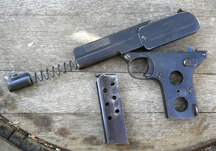 Конечно, пистолет даже для своего времени был "не очень": перемудренный, неудобный в стрельбе и в разборке для чистки (хотя еще и не критично - другое дело, что с немалой подачи все того же дедушки Браунинга устаревали конструкции буквально на глазах). Ударник, всегда взводившийся после выстрела, без холостого спуска достаточно быстро просаживал боевую пружину - однако при ношении со спущенным ударником не было возможности быстрого выстрела, приходилось досылать патрон, взводя одновременно ударник.