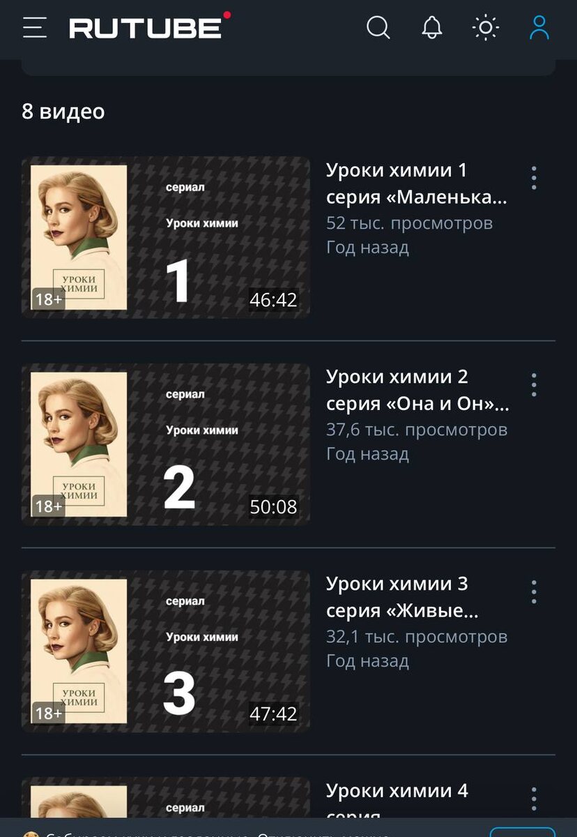 Посмотрела сериал «Уроки химии». Интересный, красивый, стильный, с глубоким смыслом и массой пользы. Долгое послевкусие после этого фильма. Снимала киностудия Apple, качество съемки на максимально высоком уровне. Есть на Rutube. Однозначно всем рекомендую. Делитесь потом впечатлениями после просмотра)