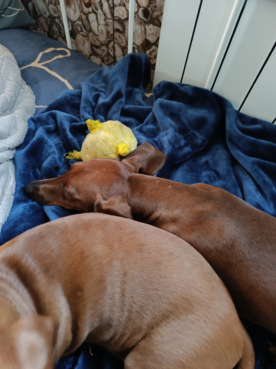 Всем утро доброе. Вчера вечером меня неожиданно сморило. Собаки попросили ужин пораньше, пошла на уступки и потом мы все вместе завалились к ним на диван поваляться... В 2 часа ночи я проснулась от того, что все болит и не дышится... У такс было все прекрасно. Я с трудом разогнулась, уговорила всех в ночи выйти помоционить и отползла на второй этаж. Проснулись мы сегодня позже обычного. Но, день вчерашний был возрадован новой игрушкой. Что это за жёлтое существо-науке не ведомо. Мягкое, округлое, с пупырками. Пищит. На утро все ещё издает звуки, только пупырки слегка покоцаны. Так что, существо достаточно живучее. На утро этот жёлтый комок стал переходящим знаменем от Барсы к Даше. Они по очереди бегают ко мне и жалуются, кто у кого отобрал. Но, Барса оказалась хитрее. Она теперь приносит ЭТО НЕЧТО ко мне и требует играть не выпуская изо рта. Умные они, ёшкин кот.