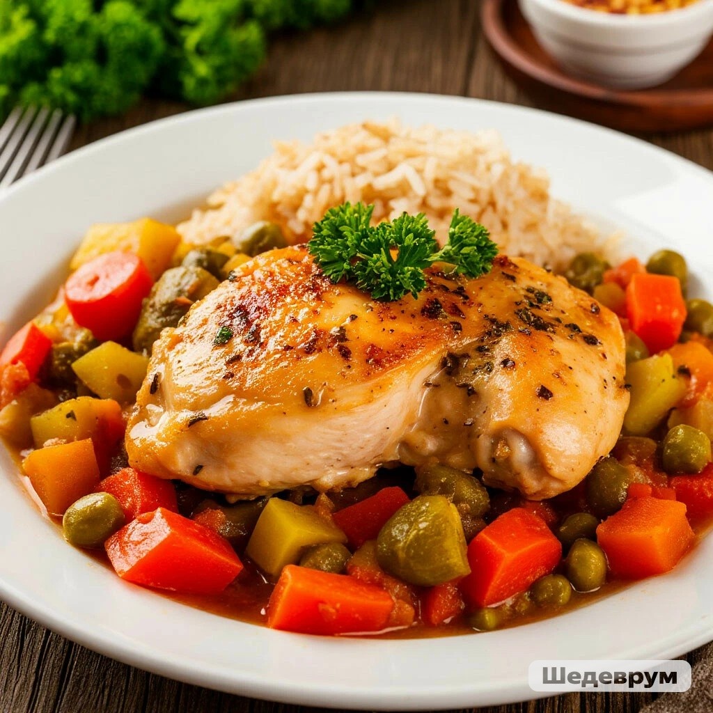 **Ингредиенты:** - Куриная грудка — 2 шт. - Морковь — 1 шт. - Болгарский перец — 1 шт. - Лук репчатый — 1 шт. - Рис — 200 г - Оливковое масло — 2 ст.л. - Специи (соль, перец, паприка) **Приготовление:** 1. Нарежьте курицу небольшими кусочками. 2. Обжарьте кусочки курицы на оливковом масле до золотистой корочки. 3. Добавьте нарезанные овощи (морковь, болгарский перец, лук), обжарьте вместе с курицей ещё 5 минут. 4. Отварите рис отдельно согласно инструкции на упаковке. 5. Смешайте готовую курицу с овощами и рисом, добавьте специи по вкусу. --- **Ингредиенты:** - Филе рыбы (лосось, треска) — 2 шт. - Картофель — 4 шт. - Лимон — 1/2 шт. - Оливковое масло — 2 ст.л. - Зелень (укроп, петрушка) - Специи (соль, перец, сушёная зелень) **Приготовление:** 1. Очистите картофель, нарежьте картофель. 2. Рыбу промойте, обсушите бумажным полотенцем, посолите, поперчите, сбрызните лимонным соком. 3. Выложите картофель на противень, сверху положите рыбу. 4. Полейте всё оливковым маслом, посыпьте с