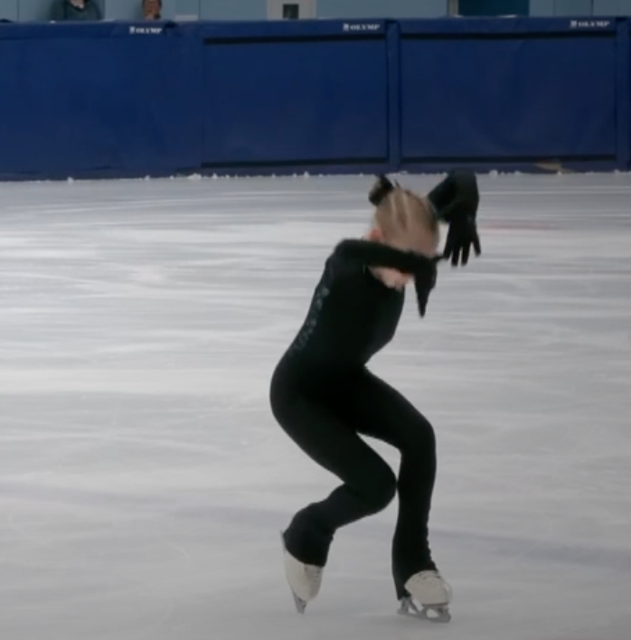 И я думала, что задумка с бумажным самолетиком будет как-то реализована, но оказалось, что это скорее поиск позиции головы и тела в попытке побежать за прекрасным будущим. Пока не сложилось. Хотя Елизавета откаталась очень технично, на высокой скорости.