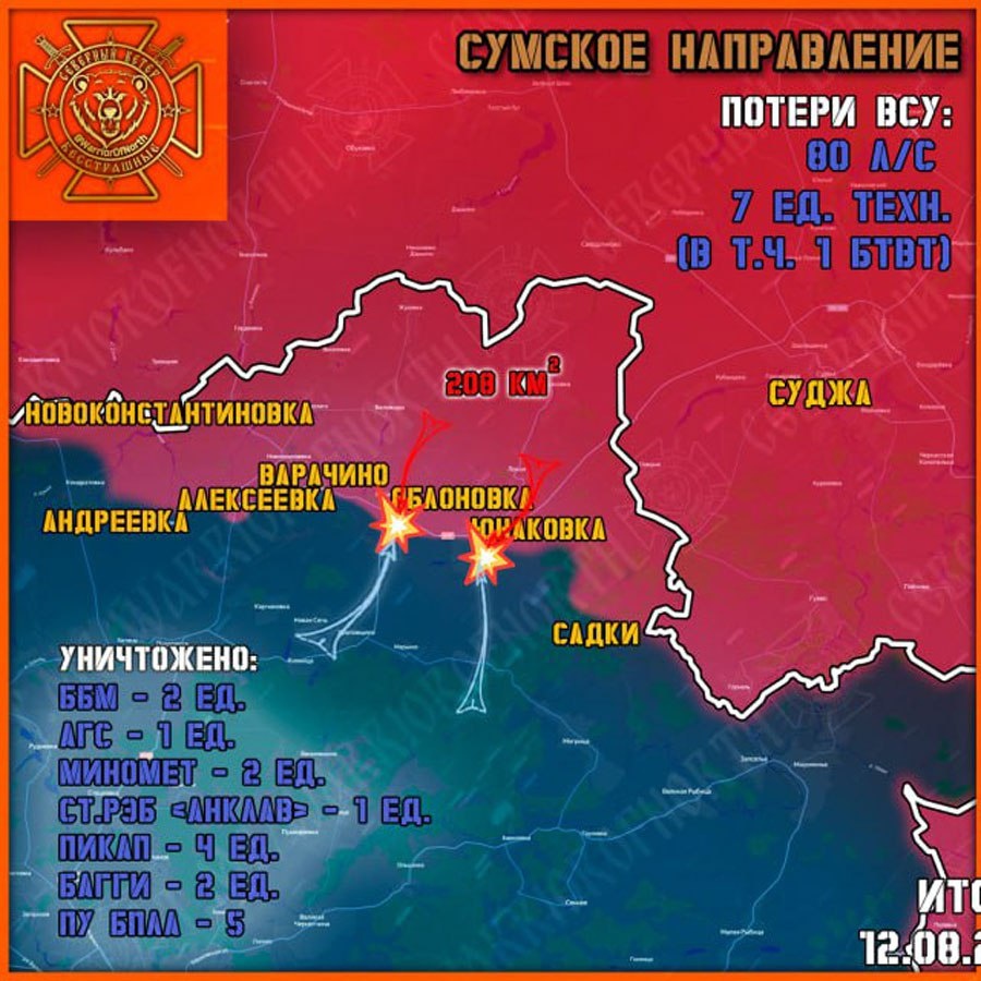 У границ Курской области продолжают кипеть боевые действия. Особенно серьезные сражения кипят в Юнаковке, которую российская армия уже не первый месяц пытается взять под контроль. Противник усиленно сопротивляется, бросая сюда всё новые и новые силы. - В Юнаковке Сумской области боевые действия остаются интенсивными, - отметили в группировке войск "Север". - Несмотря на сопротивление боевиков ВСУ, бойцы РФ смогли продвинуться в этом населенном пункте еще на 400 метров. Сообщается, что противник сейчас проводит перегруппировку и восстанавливает боеспособность штурмовых групп. Всё это говорить о том, что ВСУ готовятся к возобновлению атак. - На Теткинском и Глушковском участках фронта без существенных изменений, - констатируют российские военные. - Авиация РФ продолжает работать по выявленным целям - по скоплениям личного состава и техники ВСУ. В самой Курской области оперативная обстановка остается сложной. В приграничье от ударов дронов продолжают страдать мирные жители, в регионе