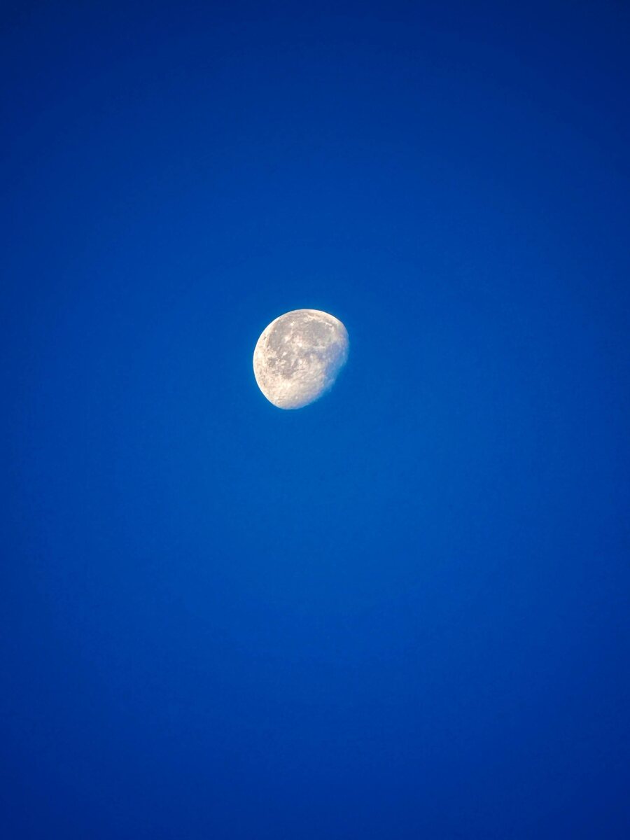 Не думал, что на телефон можно так хорошо поймать такой кадр — яркая луна на фоне чистого неба выглядит просто потрясающе. Эти моменты делают утро особенно красивым и тихим.