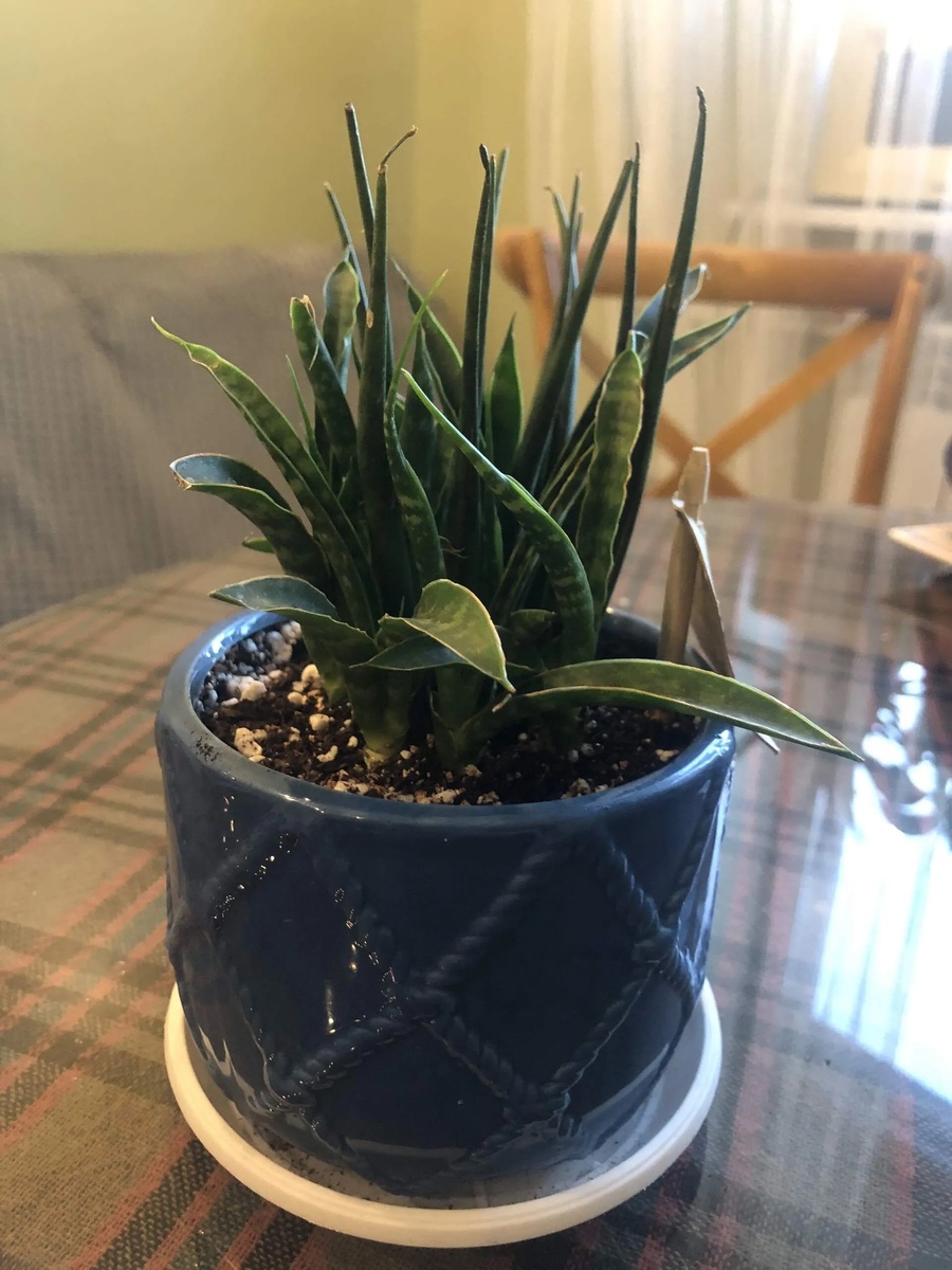 Сансевиерия Фернвуд Панк (Sansevieria Fernwood Punk) – это эффектный сорт сансевиерии, отличающийся необычной формой листьев и компактным ростом. Листья: Узкие, цилиндрические, слегка изогнутые, с заостренными кончиками. Окрас: Темно-зеленые с поперечными светлыми полосами, иногда с сероватым оттенком. Форма роста: Розеточная, листья растут пучком, создавая "панковский" растрепанный вид. Размер: До 40–60 см в высоту, подходит для небольших помещений. Уход ☀️ Любит яркий рассеянный свет, но выносит полутень. 💧 Умеренный полив, только после просыхания почвы. Зимой – редкий. 🌱 Легкая, дренированная почва (подойдет смесь для кактусов и суккулентов). 🌡️ +15…+25°C, боится холода ниже +10°C. 💊 Летом 1 раз в месяц удобрением для суккулентов. Скорость роста: - В высоту: За год может вырасти на 5–15 см (в зависимости от условий). - Формирование новых листьев: Обычно 2–4 листа в год (иногда больше при идеальном уходе). - Максимальная высота: Достигает 40–60 см (