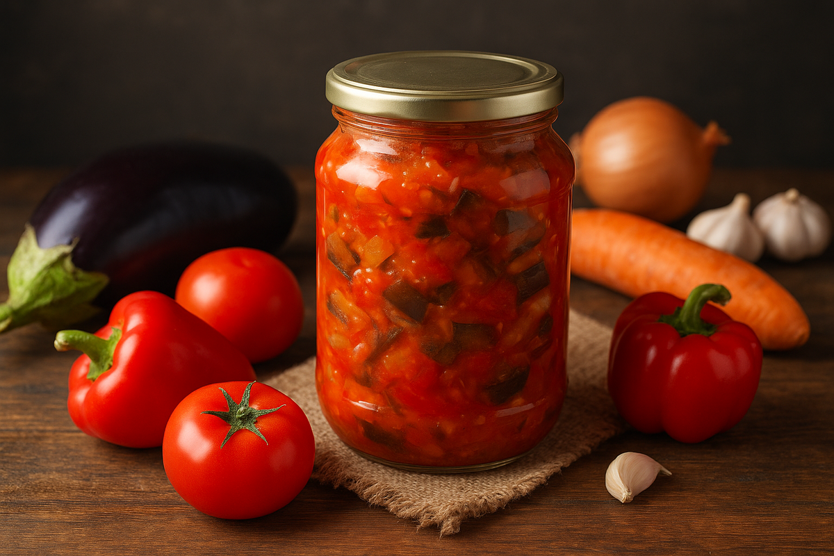 Лечо из баклажанов на зиму — вкусная и яркая заготовка Лечо — это ароматная закуска родом из Венгрии, которая в нашей кухне получила особую популярность. В классическом варианте блюдо готовят из сладкого перца, томатов и лука, но сегодня мы приготовим лечо с баклажанами. Такая заготовка получается сытной, в меру сладкой и слегка пикантной. Зимой её можно подать к мясу, картошке или просто к свежему хлебу. --- Ингредиенты Баклажаны — 2 кг Помидоры — 1 кг Болгарский перец — 0,5 кг Морковь — 0,5 кг Лук репчатый — 5 шт. Чеснок — 5 зубчиков Растительное масло — 200 мл Сахар — 100 г Соль — 2 ст. ложки Уксус 9% — 100 мл --- Пошаговый рецепт 1. Подготовка овощей Вымойте и очистите все овощи. Баклажаны нарежьте брусочками. Если хотите убрать горечь, посолите их, оставьте на 20 минут, затем промойте и обсушите. Лук нарежьте полукольцами. Перец — полосками. Морковь натрите на крупной тёрке. Помидоры измельчите в пюре (можно через мясорубку или блендер). 2. Обжарка