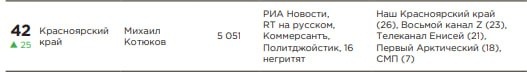 В новом исследовании "Индекс Telegram. Август 2025" губернатор Красноярского края Михаил Котюков занял 42 место по упоминаниям среди губернаторского корпуса. По Сибирскому Федеральному округу Михаил Котюков занял третье место. "8 телеканал" стал вторым среди telegram-каналов по упоминанию главы региона. В тройке лидеров - Сергей Собянин (Москва), Юрий Слюсарь (Врио губернатора Ростовской области) и Вячеслав Гладков (Белгородская область). ________ 🔴Оставить обращение ✏️ 🔴Подписывайтесь на 8 канал