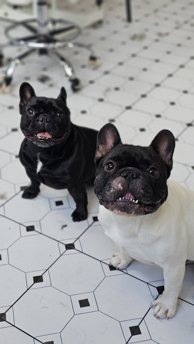 Две французские булочки Арчи и Альф тоже решили воспользоваться акцией на второго питомца и выгодно сходили в спа