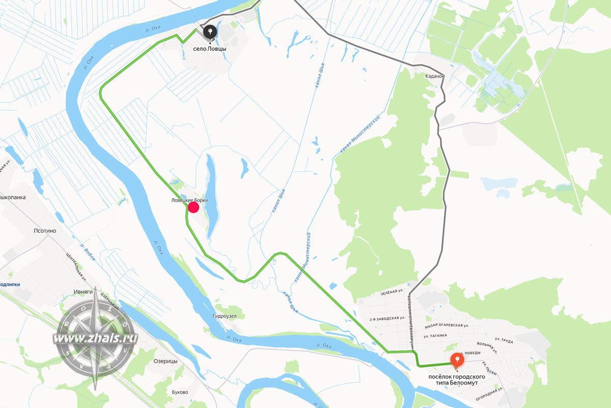 Оставив позади Белоомут мы направляемся в следующее бывшее дворцовое село, расположенное на том же, левом берегу Оки - Ловцы.