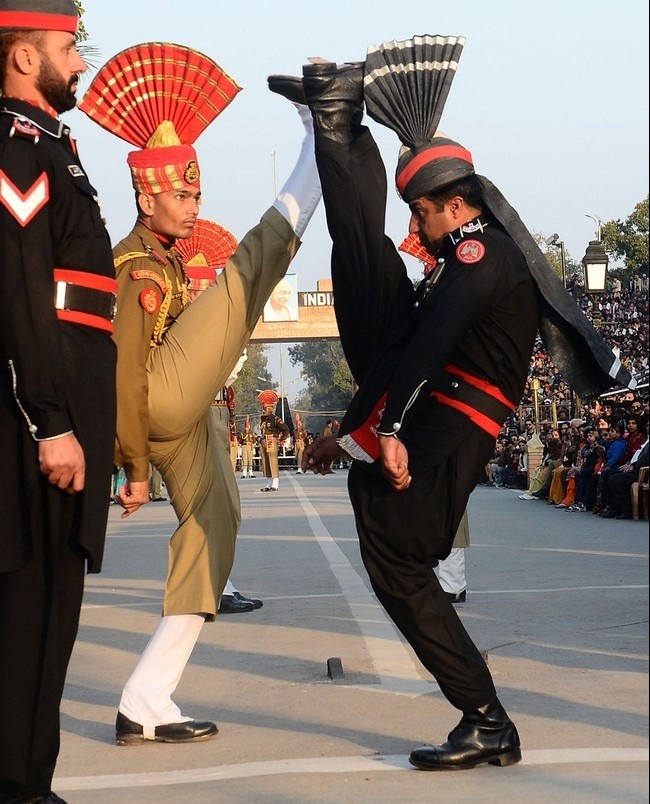 Особая ответственность лежит на людях, которые поднимают и опускают флаг. Боже упаси кому либо нарушить синхронность. Ну или Аллах. Если говорить о пакистанской стороне.