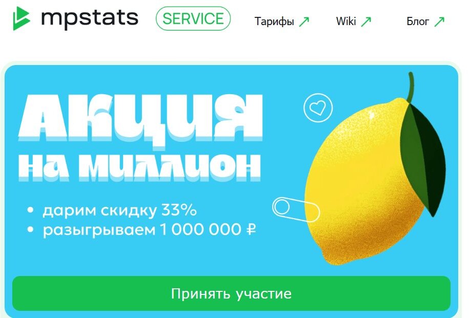 Миллион — это не просто цифра. Это тысяча возможностей, миллионы идей и один отличный повод для подарков. MPSTATS празднует 1 000 000 регистраций — и запускает супервыгодную акцию: дарит 33 % скидку на подписки и разыгрывает миллион рублей! Разберёмся, как всё работает и почему это нельзя пропустить. До 31 августа 2025 года MPSTATS предлагает: Кто может участвовать? Все — и новички, и постоянные пользователи. Главное — выбрать трёхмесячную подписку. Почему именно три месяца? Это оптимальный срок, чтобы увидеть результат, оценить эффективность сервиса и при этом получить максимальную выгоду. Важно: промокоды не действуют, но прогрессивная скидка при добавлении от 3 модулей в корзину — сохраняется. Сроки акции: с 13.08.2025 по 31.08.2025 включительно. Чтобы попасть в розыгрыш и получить скидку: 1. Перейди в раздел тарифов MPSTATS до 31 августа.