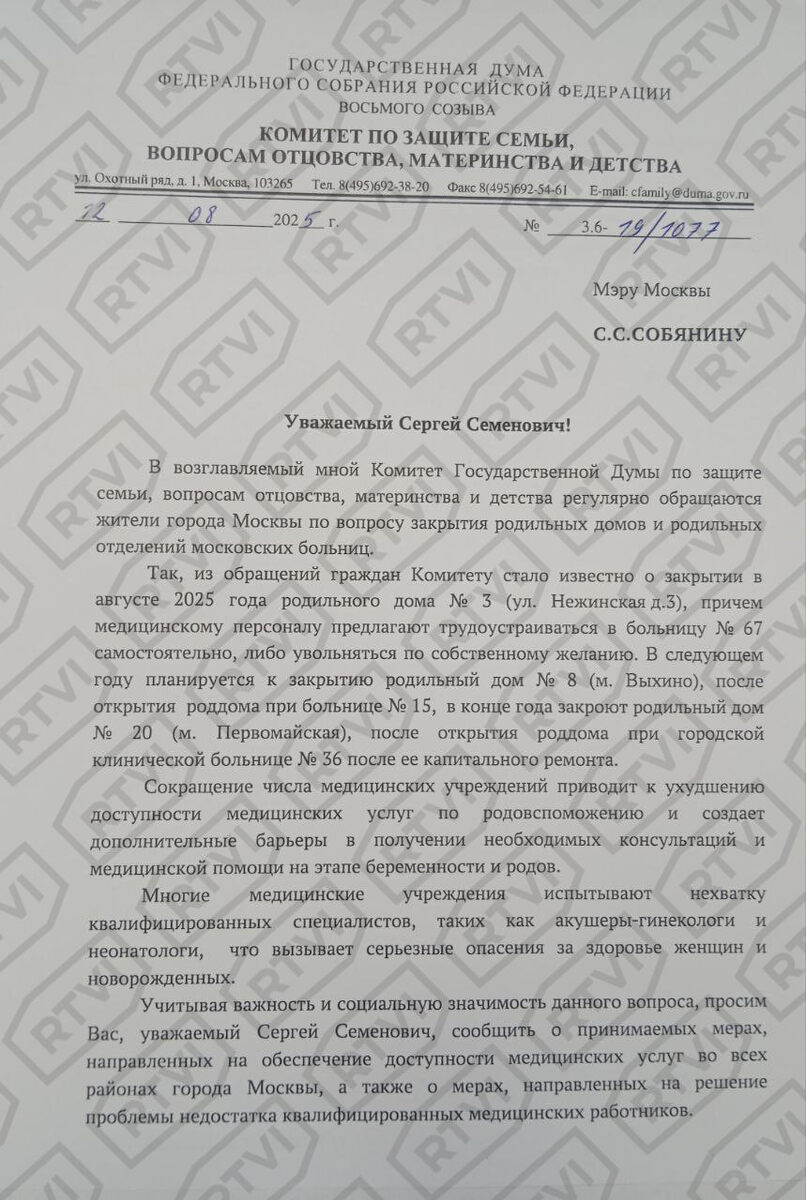 Глава думского комитета по защите семьи Нина Останина обратилась к мэру Москвы Сергею Собянину. Она запросила данные о количестве и причинах закрытия городских роддомов с 2024 года. 🚼 Причиной стали регулярные обращения горожан.