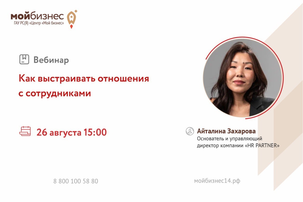 🚀Центр «Мой бизнес» приглашает на вебинар «Как выстраивать отношения с сотрудниками» ✔️Вебинар подойдет для руководителей, HR-специалистов и предпринимателей, поможет превратить разрозненных сотрудников в единую, мотивированную и эффективную команду. 📝В программе: - Роли в коллективе — кто за что отвечает и как это влияет на атмосферу. - Почему отношения внутри команды — ключ к прибыли. - Как эффективно коммуницировать с представителями разных поколений. - Настоящая роль руководителя — что отличает управленца от вдохновляющего лидера. 📆Дата: 26.08.2025 г. ⏰Время: 15:00 🎙Спикер: Айталина Захарова, основатель и управляющий директор «HR PARTNER», с опытом более 10 лет в HR, сертифицированный коуч ICF. Эксперт в подборе и адаптации персонала, а также внешний HR-консультант. 🔗Ссылка для регистрации: https://clck.ru/3NdRUN 🤝Развивайте бизнес с нами! @moibizsakha