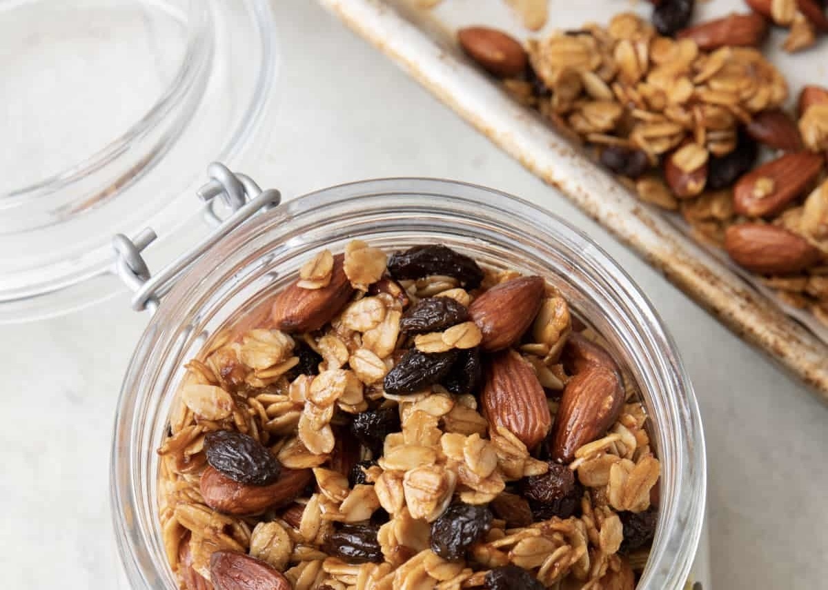 Гранола кажется сложным блюдом, но на самом деле её легко приготовить дома — из простых ингредиентов и без лишнего сахара. Давайте разберёмся, почему домашний вариант в разы лучше магазинного и как сделать его без лишних хлопот. ✔ Без скрытого сахара (в готовой часто добавляют глюкозный сироп). ✔ Настоящие орехи и сухофрукты (а не дешёвые заменители). ✔ Можно контролировать калорийность. ✔ Экономия денег (магазинная в 3-5 раз дороже). Пример: В покупной граноле часто меньше 30% орехов, а в домашней — столько, сколько захотите. 💡 Секрет: Сухофрукты добавляйте после выпечки — так они не станут жёсткими. Важно! Каждые 10 минут перемешивайте — иначе подгорит. 🥛 С греческим йогуртом — баланс белка и углеводов. 🍌 С бананом и арахисовой пастой — для сытного завтрака. 🍓 С ягодами и семенами чиа — витаминный заряд. ☕ Как перекус с кофе — вместо печенья. 🍦 С мороженым — полезный десерт. ✔ В стеклянной банке под крышкой — до 2 недель. ✔ Можно заморозить (до 3 месяцев). 🚫 Нельзя: Держать в о