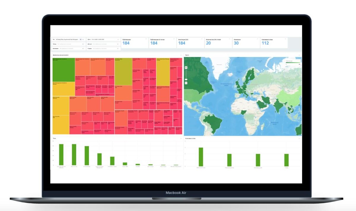Мы значительно усилили аналитику: теперь можно видеть распределение научных публикаций по ключевым технологическим направлениям и регионам мира.