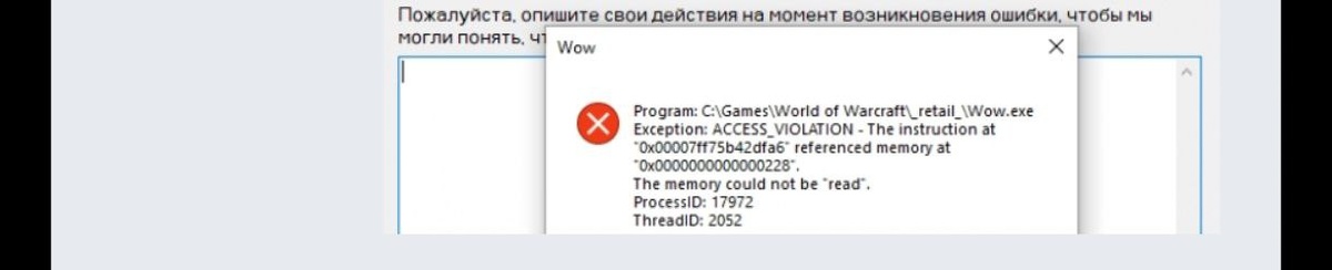 Всем привет! Подскажите, пожалуйста, что на ретейле, что на классике игра крашится в случайный момент и вылетает с ошибкой "Access Violation". Никакие манипуляции не помогают: игру переустанавливал, дрова обновлял, антивирус отключал. Потом начал гуглить, оказалось, что дофига у кого такая проблема. Может, кто-то сталкивался и решил? Буду рад любой помощи. Скрин ошибки прикрепил