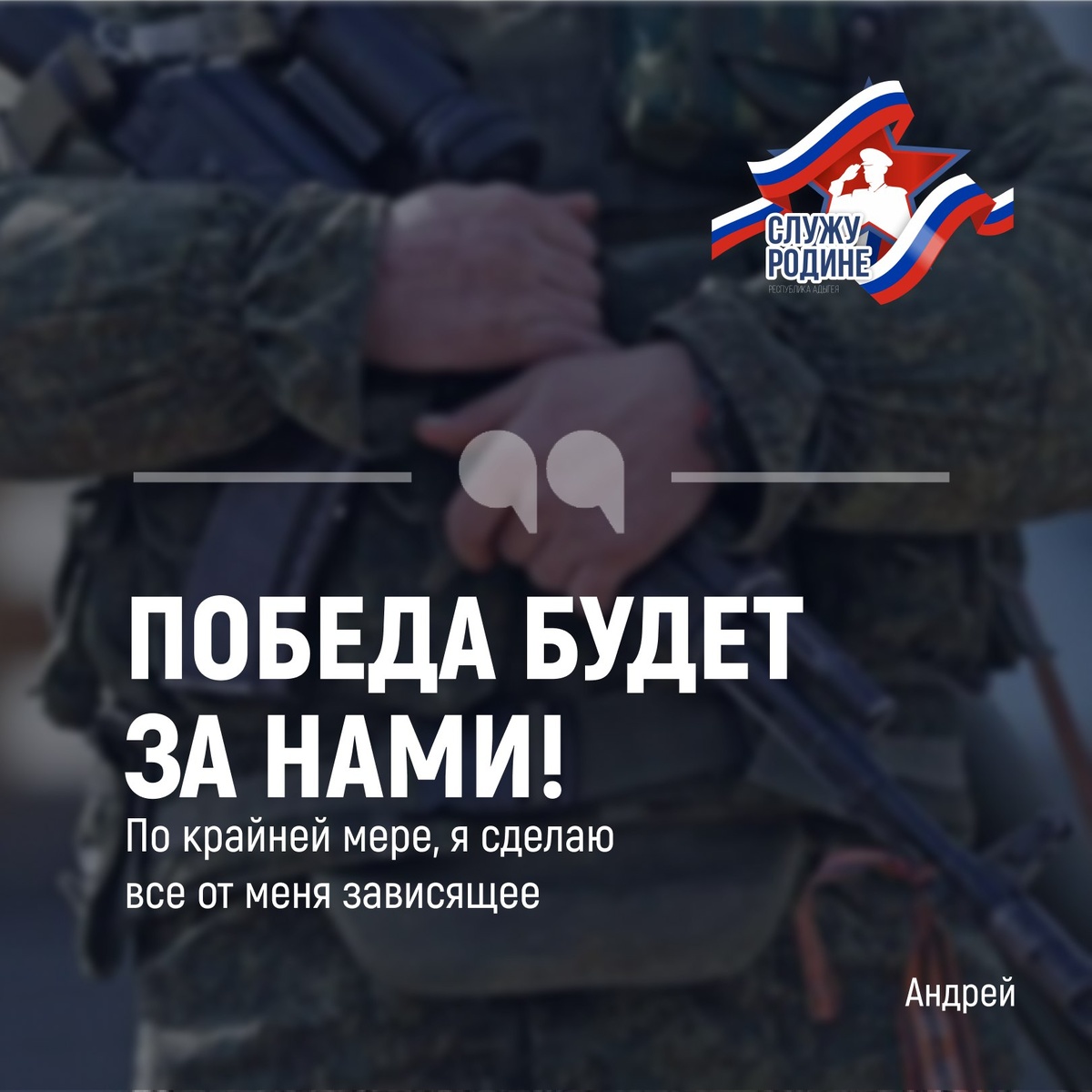«Почему я должен остаться в стороне? Ведь решается будущее страны, а, значит, и моих детей» - так Андрей из Шовгеновского района четко обозначил свою позицию. Он вырос в трудолюбивой семье, окончил местную школу, а после отслужил в армии. Вернувшись домой, работал в хозяйстве, создал семью. Но когда пришло время, он принял смелое решение — подписать контракт с Минобороны и отправиться на специальную военную операцию. «Сейчас нам противостоит целое сообщество враждебно настроенных государств, поэтому наша сплоченная позиция очень важна», — рассказывает он, находясь на службе в артиллерийском подразделении. Супруга Андрея гордится мужем и рада, что именно он стал частью ее жизни: «Мы расскажем внукам о том, как все было, чтобы новое поколение помнило о значимости этой спецоперации».