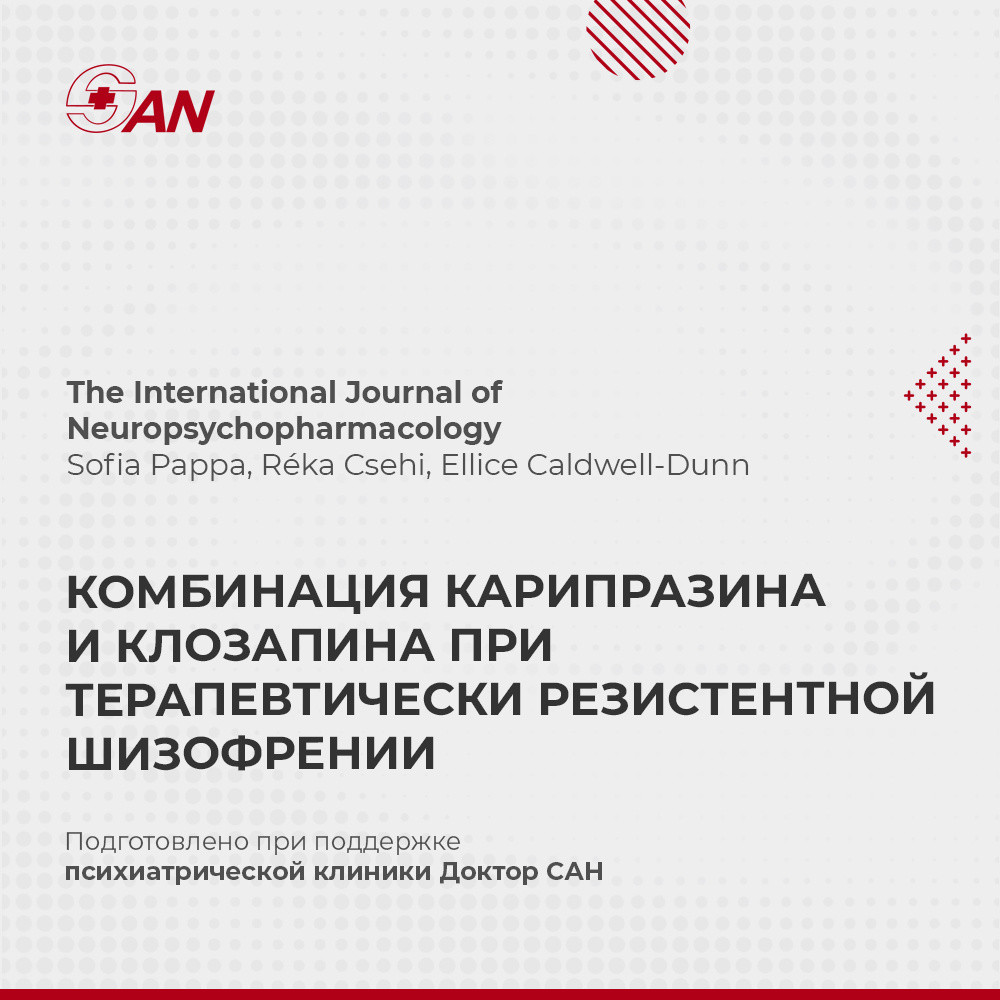 Систематический обзор, опубликованный в International Journal of Neuropsychopharmacology, проанализировал эффект комбинации карипразина и клозапина при лечении пациентов с шизофренией, не отвечающих на монотерапию клозапином.
