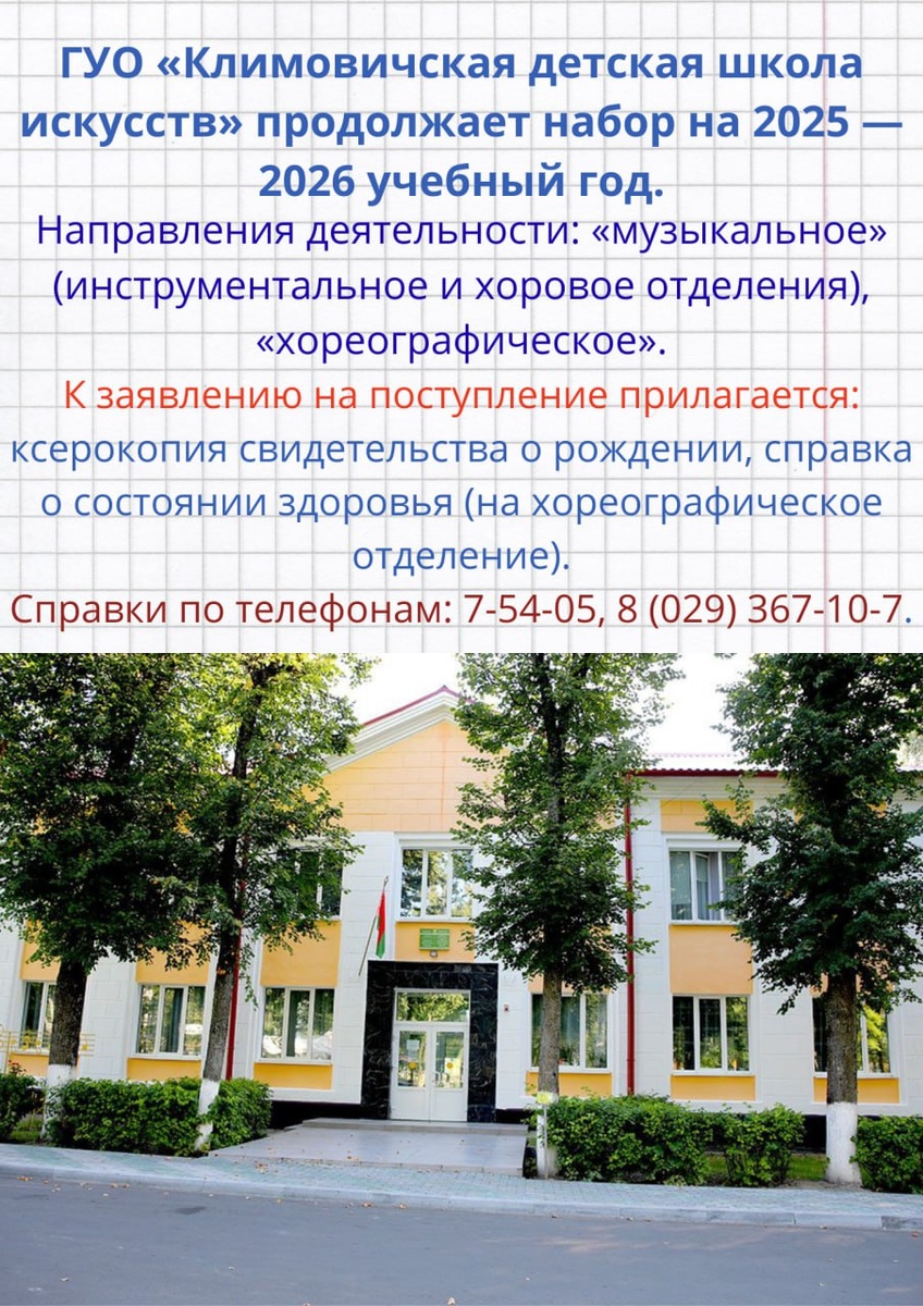 ‼️Климовичская детская школа искусств продолжает набор учеников