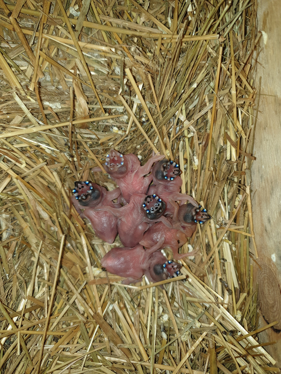 Голые, почти полупрозрачные малыши амадин в первые дни жизни и правда выглядят неказисто. Но загляните им в пасть — по краю клюва и на нёбе видны яркие «бусины». Эти точки вовсе не демонические огни, а светорассеиватели: миниатюрные сосочки и пятна, которые у многих амадин отражают и даже флуоресцируют в ультрафиолете. Кто бы мог подумать, что природа придумала для птенцов такие «указатели»?