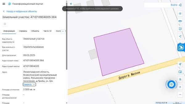 Название: Земельный участок из земель, государственная собственность на которые не разграничена, с кадастровым номером 47:07:0904005:364