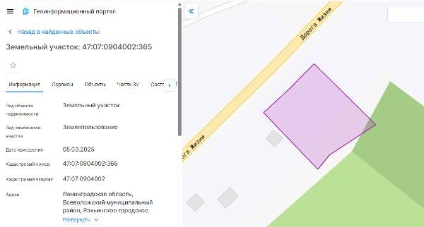 Название: Земельный участок из земель, государственная собственность на которые не разграничена, с кадастровым номером 47:07:0904002:365