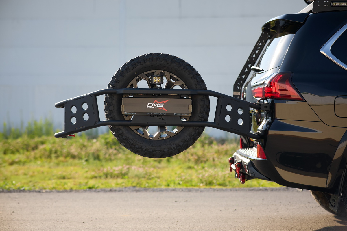 Важная деталь — все крепления запасного колеса BMS Engineering разрабатываются индивидуально под каждый автомобиль, чтобы добиться идеальной совместимости и надёжной установки. Есть сертификат соответствия, чтобы официально провести доработку авто через ГАИ.