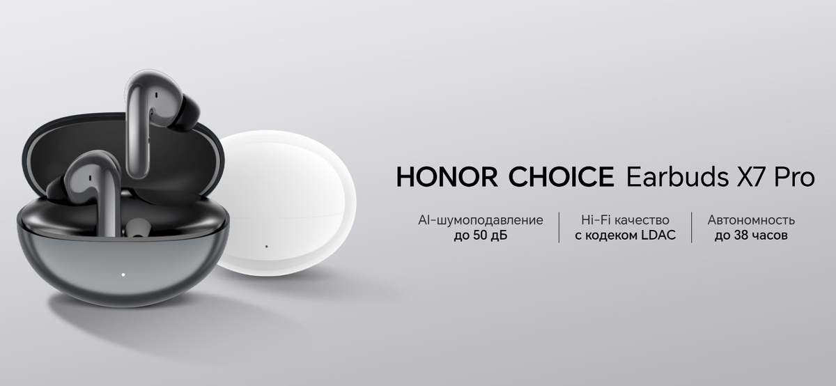 В российских магазинах появились беспроводные наушники Honor Choice Earbuds X7 Pro с обещанием 38 часов автономности и Hi-Res звуком за 4490 рублей. Разбираем, что получает покупатель за эти деньги и стоит ли рассматривать эту модель. По характеристикам выглядят интересно, но давайте копнем глубже и посмотрим, что реально предлагает Honor в этом ценовом сегменте. Производитель сделал ставку на несколько ключевых особенностей, которые должны выделить модель среди конкурентов: Уникальная конструкция динамиков
