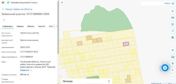 Название: Земельный участок с кадастровым номером 72:17:1609001:1005 площадь 880 по адресу Тюменская область, Тюменский район, район