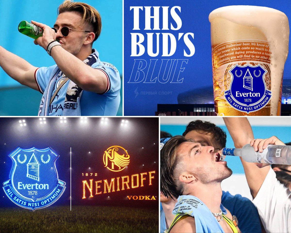 Грилиш в восторге! 🍺 Пиво и водка стали спонсорами «Эвертона», куда перешёл футболист. Незадолго до аренды Джека, у которого есть давние проблемы с алкоголизмом, «Эвертон» объявил о подписании спонсорских соглашений сразу с двумя производителями алкоголя. Ну, из-за этого и перешел?😁