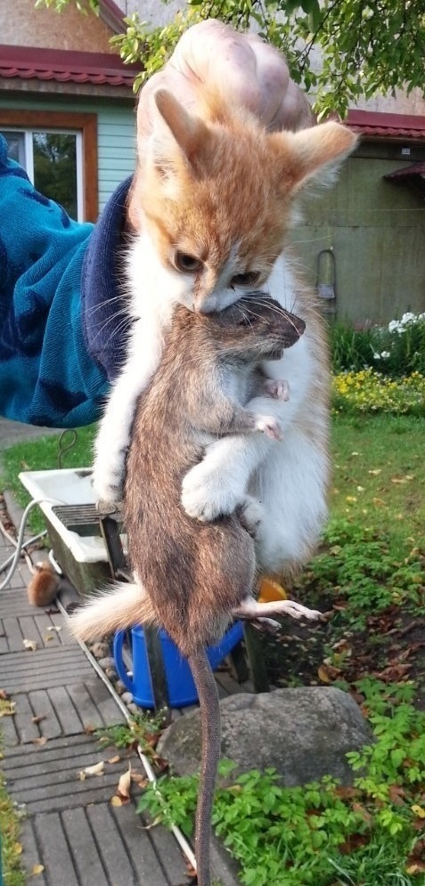 Это было много лет назад. У нас в доме завелась крыса — наглая, хитрая, и мы никак не могли её поймать. Ночью она шуршала и что-то грызла под полом, днём спала. Муж кошек не любил, но капканы не помогали. Коллега сказала: «Дам тебе своего кота, он чемпион по ловле крыс и мышей». Я уговорила мужа. Вечером её сын приносит… котёнка! Маленького, смешного. — Кота забрали родственники, — говорит, — но этот справится. Пустили его в дом. Он играл с детьми, ходил туда-сюда… И вдруг метнулся к сундуку в углу. Визг, свист, возня! Через секунду на середине комнаты вывалилась крыса… в два раза больше котёнка! Мы с детьми взлетели на диван. Муж побежал за лопатой, но пока он бегал, наш малыш вцепился крысе в шею. Минуты спустя она перестала шевелиться. Котёнок победил и, довольный, начал играть с трофеем. На следующий день коллега только улыбнулась: — Мы знали, что он справится. Он с отцом охотился. Вот так. Маленький герой. Подписаться на Пикабу Познавательный. и Пикабу: Истории из жизни.