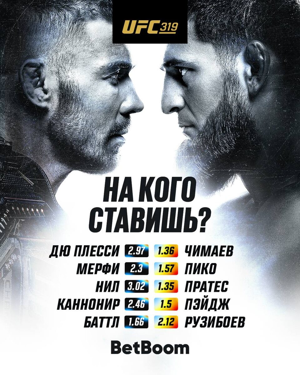 🤩 Ставь на захватывающие бои #UFC319 вместе с BetBoom по промокоду UFC25