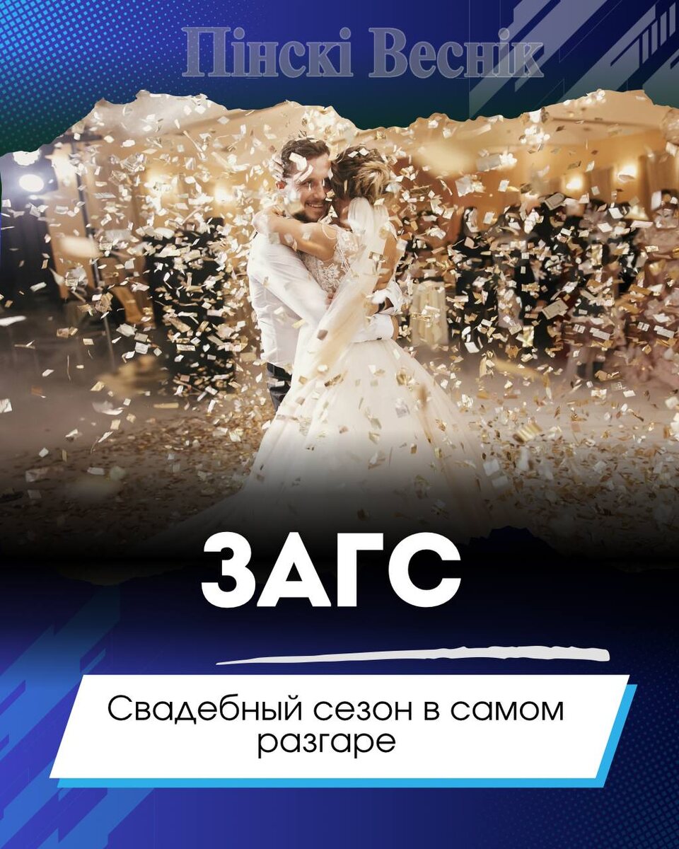 🤍Свадебный сезон в самом разгаре Начальник отдела загс горисполкома Зинаида Ляховец отметила, что именно лето является самой благодатной порой для проведения свадеб, а его третий месяц наиболее популярный у молодоженов. 🤍2025-й не стал исключением. Так, за первую декаду августа нынешнего года в отделе загс Пинского горисполкома зарегистрировано создание 47 новых семей. 🤍Пожелаем им счастья, мира и процветания! 📍📍@Пинский Вестник ЮТУБ | САЙТ| ИНСТ | ВК | ОК | ФЕ | Прислать новость