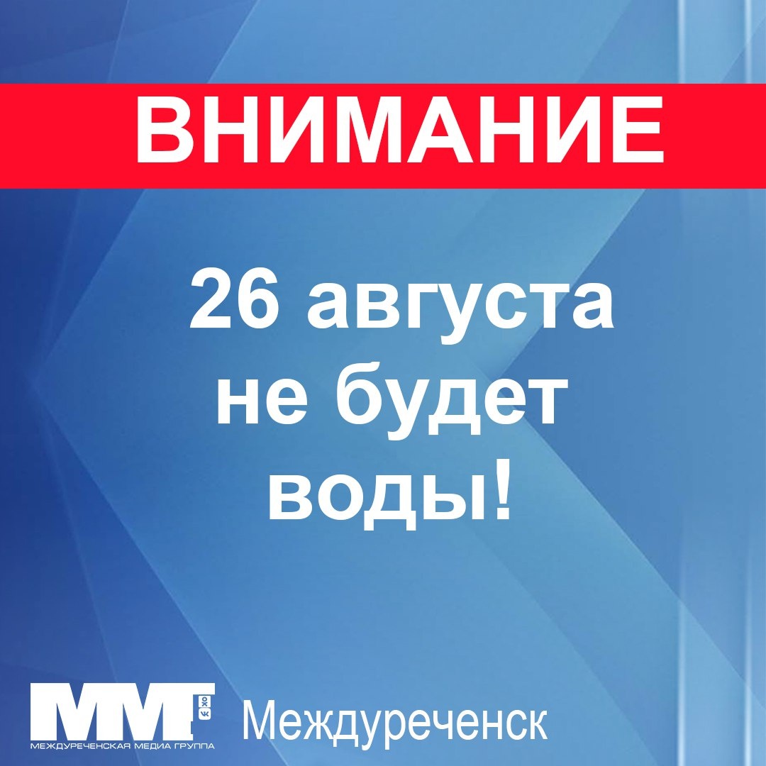 ‼️ Внимание! Отключение воды в Междуреченске ‼️ 26.08.2025 с 08:00 до 20:00 — Хлорирование резервуара на Карайском водозаборе — Ремонтные работы на водопроводных сетях 💧 Вода будет отключена по всему городу. По вопросам обращайтесь в диспетчерскую службу МУП "Междуреченский Водоканал". 🔹 Заранее запаситесь водой! #Междуреченск #Водоканал #ОтключениеВоды