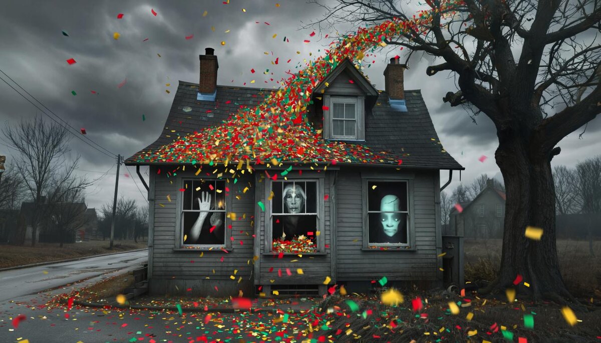 На месте добротного, пусть и старого, дома №17 зияла огромная, идеально круглая воронка. Гладкие стенки уходили вниз, в непроглядную темноту. Ни щебня, ни обломков – ничего. Только на самом краю воронки, как насмешка, лежал один-единственный, поблекший клочок бумаги из того самого "старого" конфетти. Марфа Ивановна, шатаясь, подошла и подняла его. На нем было написано всего два слова, выведенные выцветшими, но ясными чернилами: