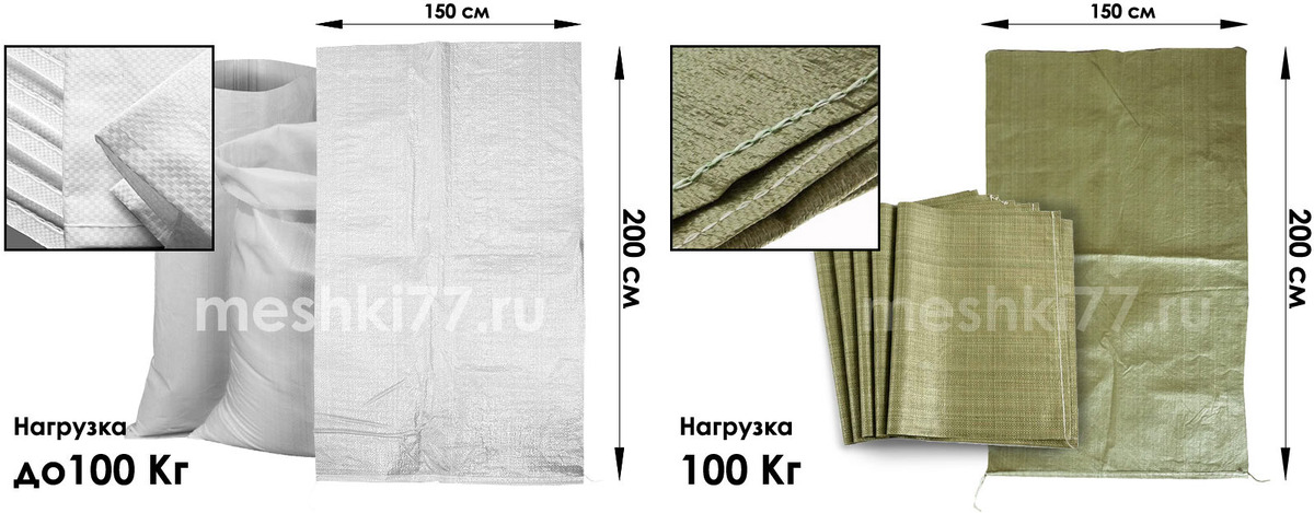 Полипропилен один из самых прочных видов пластика, который используется в различных конструкциях мешков (и других видов тары). В производстве мешков обычно используется ПП-ткань, сплетённая из полипропиленовых нитей (волокон). Такие мешки очень прочные и выдерживают большие нагрузки. Поэтому из такой ткани производят не только обычные мешки различных размеров, но и самые большие мешки — Биг-Беги, рассчитанные под максимальную загрузку до 2 тонн (для мягкой пластиковой тары). Кроме высокой прочности, полипропилен не боится влаги, не гниёт и обладает свойствами химической нейтральности — он не вступает в реакцию и химически стабилен. Эти свойства сделали его самым популярным материалом в производстве мешков для пищевой промышленности (тара для упаковки и хранения сыпучих полуфабрикатов и готовой продукции). Виды мешков из полипропилена и их конструктивные отличия Мешки из ПП-ткани различных размеров и цветов: 2-х стропные мягкие контейнеры Биг-Бэг: 4-х стропные контейнеры Биг-Бэг: Мешки