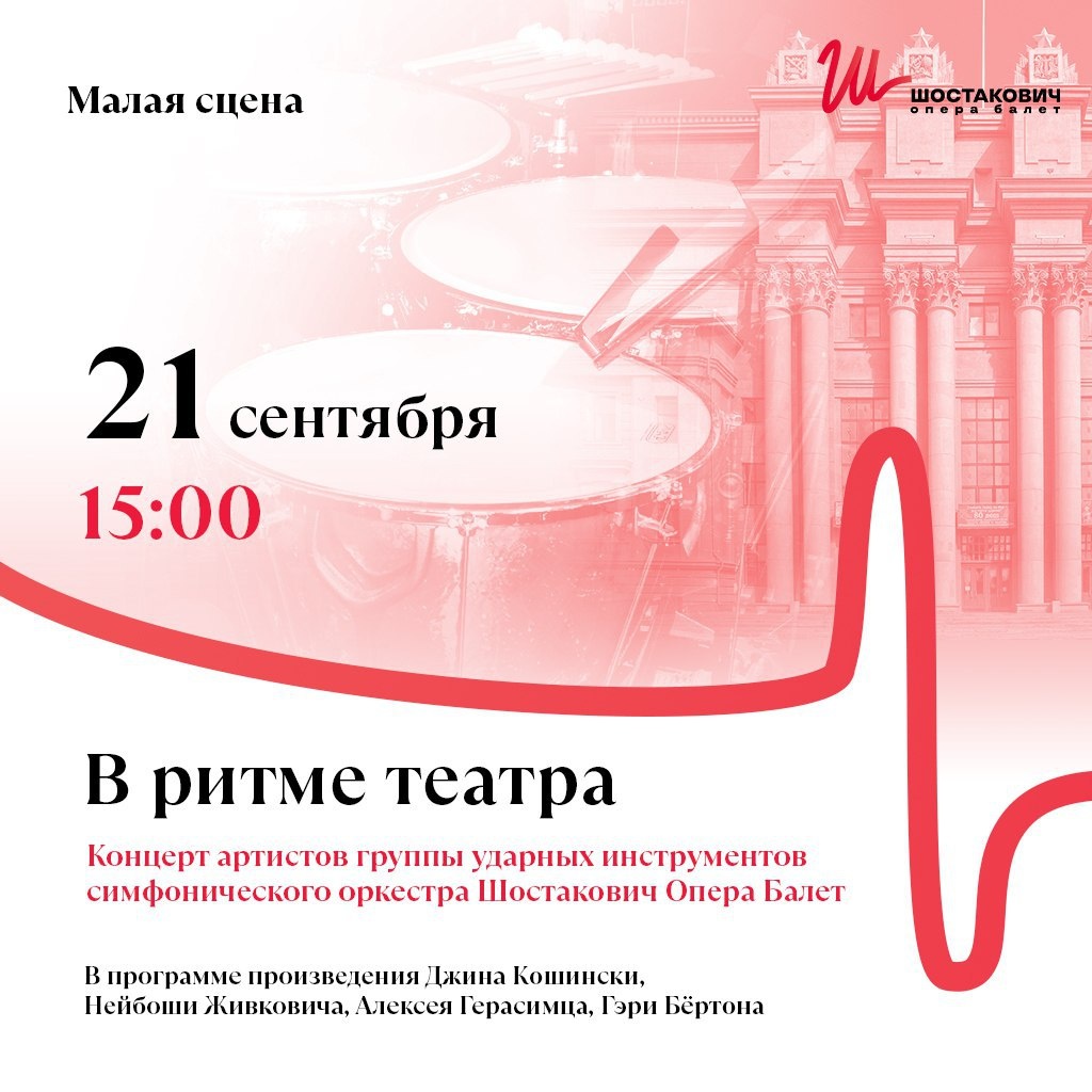 Дорогие зрители, приглашаем вас на увлекательный концерт ударной музыки «В ритме театра». В этот вечер артисты группы ударных инструментов симфонического оркестра театра выступят в необычной роли солистов, представив как оригинальные современные произведения, так и переложения известных композиций. Концерт будет включать в себя исполнение не только на традиционных ударных инструментах, но и использование неожиданных бытовых предметов в качестве музыкальных инструментов. В программе прозвучит музыка композиторов-перкуссионистов Джина Кошински, Нейбоши Живковича, Алексея Герасимца, а также джазового вибрафониста Гэри Бёртона. Произведения композиторов впервые будут исполняться в Самаре! Предстоящий концерт ударной музыки, который пройдёт 21 сентября на Малой сцене театра, обещает стать захватывающим событием. Не упустите возможность окунуться в мир ударных ритмов, насладиться мастерством исполнителей и зарядиться яркими впечатлениями! Билеты онлайн по ссылке. #ВремяДляТеатра