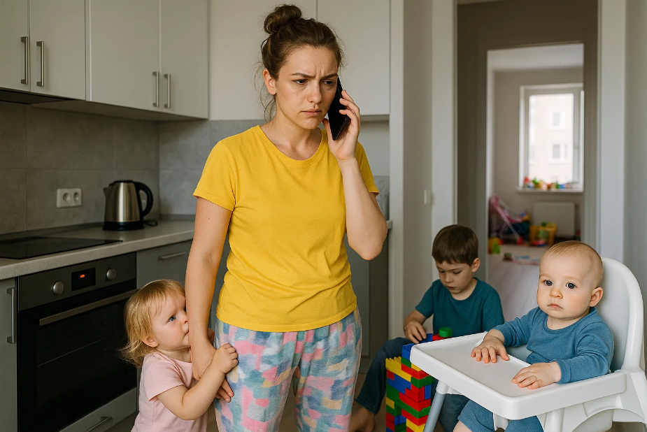 Маша автоматически подхватила падающую детскую тарелку, зажав телефон плечом. Двухлетняя Полина размазывала кашу по столу, пятилетний Артём ныл, требуя помочь с конструктором.