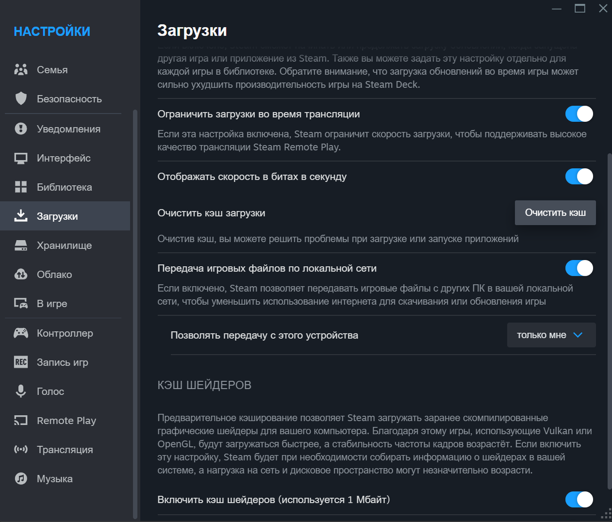 Очистка кэша загрузки Steam