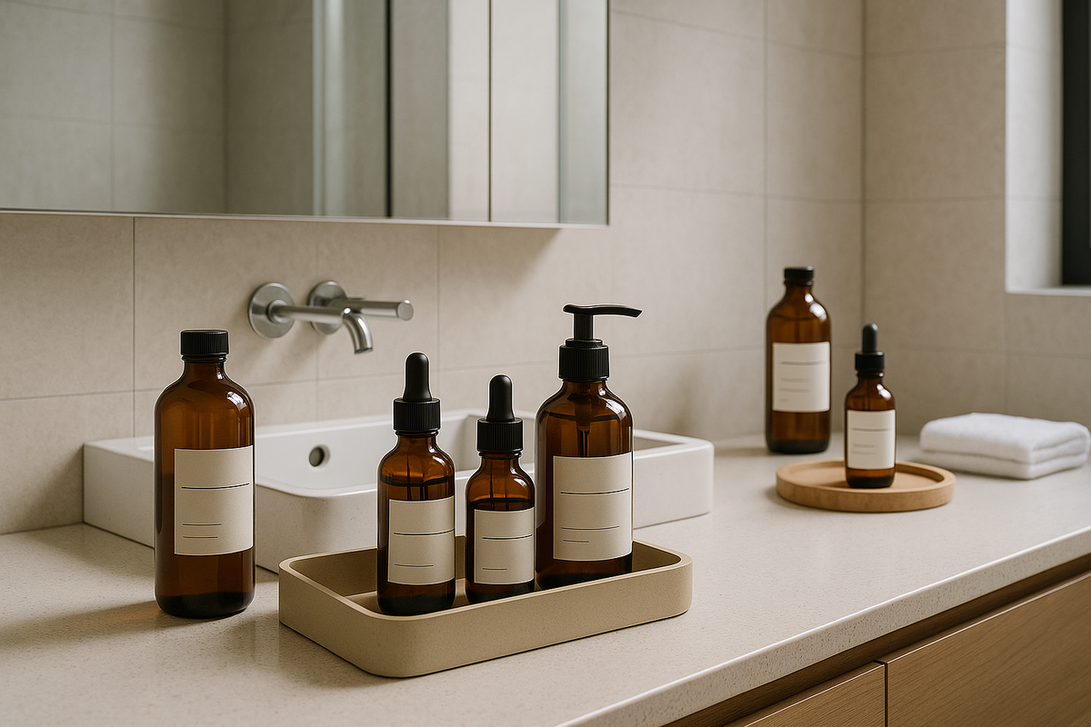 Вы заметили, как современные ванные комнаты и туалетные столики постепенно превращаются в своеобразные аптечные полки? Янтарное стекло, аккуратные пипетки, минималистичные этикетки — этот стиль уже не просто тренд среди косметологов, а настоящая эстетика для дома. Давайте разберём, почему аптечная эстетика завоёвывает сердца всех, кто следит за уходом, модой и интерьером. Этот материал давно используется в фармацевтике для хранения витаминов и активных веществ, которые чувствительны к свету. В косметике этот материал не только сохраняет формулу, но и визуально поднимает статус продукта. Тёмные флаконы выглядят дороже и «аптечнее», создают ощущение профессионализма и заботы о составе. Применение: идеально подходят для сывороток, масел, тонеров и других средств с активными ингредиентами. Маленькие флакончики (10–30 мл) можно ставить на полку как декоративные элементы, а большие — использовать для регулярного ухода. Пипетки и мини-дозаторы позволяют дозировать средство точно: ничего не пр