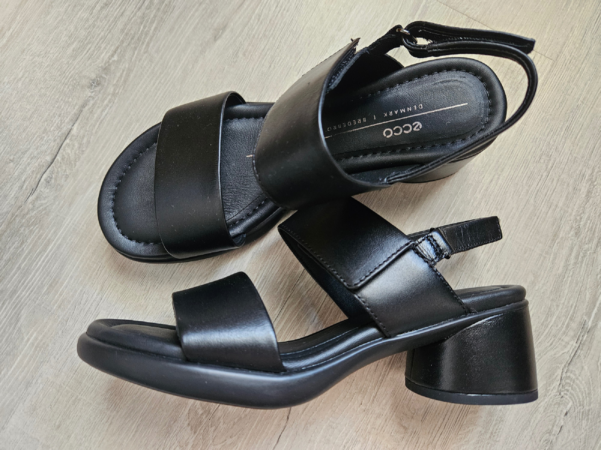 Покупала на Озоне за 6069. Такая же модель есть в рыжем и молочном цветах. Натуральная кожа, подошва - резина, так что они не особо лёгкие. У Ecco европейская размерная сетка, то есть их размер на 1 больше нашего. У меня 35 размер ноги, заказала 36 на стопу 225 мм - подошли идеально. Устойчивый каблук 5 см. Мне в них очень удобно. В местах, которые могли натереть, я заранее наклеивала рулонный пластырь телесного цвета, со временем делать это перестала, когда разносила. Для меня очень комфортная модель, а ещё мне сложно подобрать обувь по размеру, так что я вдвойне довольна. Цена, конечно, высокая, но если качество не подведёт и нога не увеличится, то мне хватит этих босоножек лет на 10, как было с прошлой парой.
