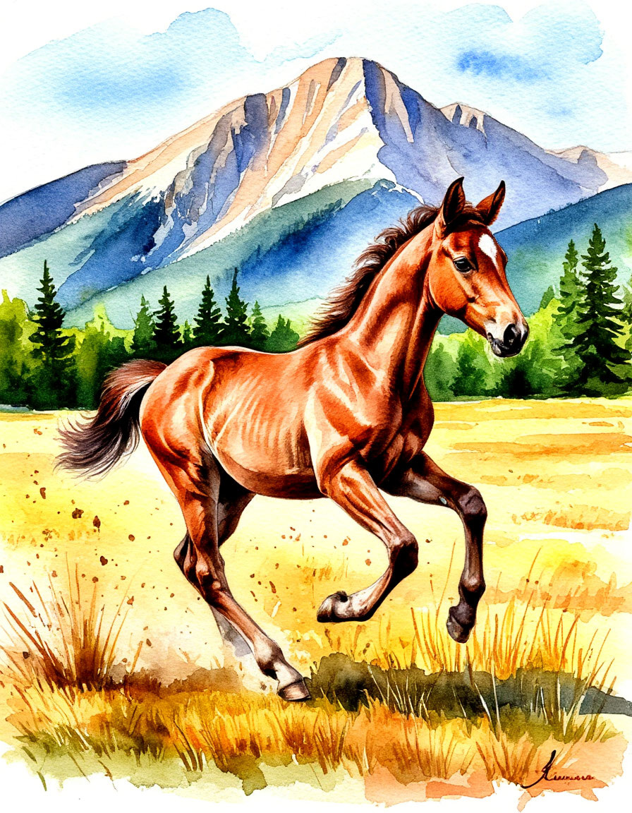 В одной зелёной долине, среди полей и высоких гор, жил-был маленький жеребёнок по имени Искрик. Он был весёлым, резвым, но ужасно непослушным. Его мама каждый день говорила ему: — Искрик, не убегай далеко от табуна! В лесу живёт хитрая лиса, а в тёмных кустах может прятаться голодный волк! Но Искрик только фыркал и тряс гривой: — Я быстрее всех! Меня никто не догонит! И вот однажды, когда табун мирно пасся у подножия холма, Искрик решил, что ему скучно. Он подумал: «А что, если я забегу на ту самую гору, откуда видно всё-всё на свете?» И, не спросив разрешения, помчался вперёд. Трава мелькала под копытами, ветер свистел в ушах — как же было весело! Но вдруг Искрик споткнулся о корень и упал прямо в густые заросли. Он попытался встать, но повредил ногу и запутался в зарослях. А потом… из темноты раздался тихий хруст веток. — Ой, какой аппетитный жеребёнок заблудился! — проголосила лиса, выходя на поляну. Искрик задрожал. Он вспомнил мамины слова, но теперь было поздно. Лиса приближалась