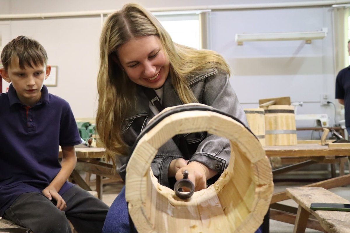 В ответ на пост 🤍Мастер-класс по бондарству в Ивановской школе искусств 🤍После короткого переезда мы оказались в Ивановской детской школе искусств народного декоративно-прикладного творчества, увидели бондарское ремесло в деле. 🤍Познакомились с ребятами, которые там обучаются, и даже поучаствовали в изготовлении бочки. Справочно: Анкеры и барильца, кумганы и кухли, биянки и лохани… Слова, привычные многим жителям полесского Иваново с детства. Яновцы, как называют себя местные, бондарством занимаются столетия 🫡🫡@Пинский Вестник ЮТУБ | САЙТ| ИНСТ | ВК | ОК | ФЕ | Прислать новость