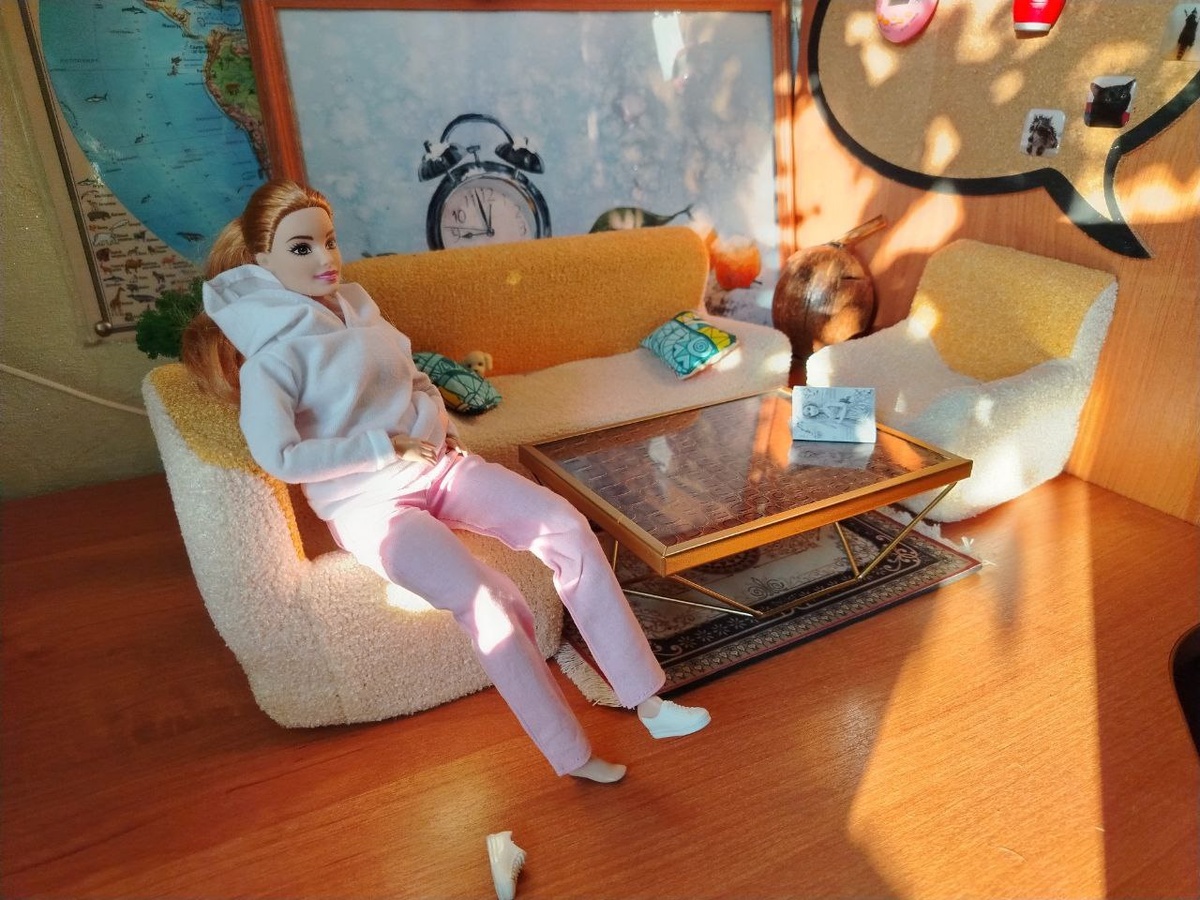 Увидев маму, Даша радостно махнула ей рукой и запихала полотенце в угол кресла.