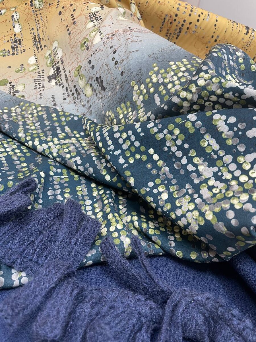 Благородный сет-подборка из трех тканей в спокойной гамме синего и зеленых оттенков