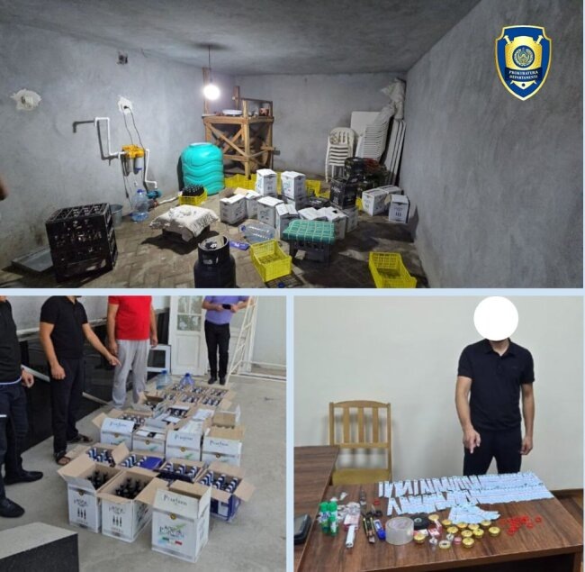 Сотрудниками территориального Управления Департамента Акдарьинского района, при содействии сотрудников Службы государственной безопасности и органов внутренних дел, было проведено оперативное мероприятие. В ходе мероприятия был выявлен житель махаллинского схода граждан "Бадал" Самаркандского района, который в своём доме организовал подпольный цех по производству алкогольных напитков. В доме мужчины удалось выявить и изъять 264 бутылки некачественной алкогольной продукции, готовой к реализации, 186 поддельных акцизных марок, 226 пустых бутылок и другие предметы, необходимые в производстве.