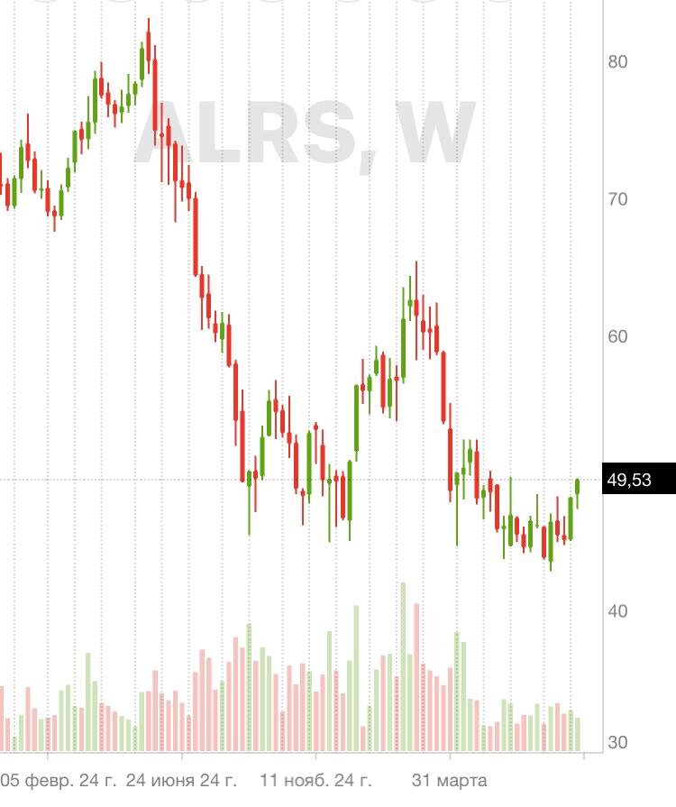 Выручка за первое полугодие упала на 25%. Да, прибыль выросла чуть. Но, надо смотреть отчего. Может от продажи доли в ангольском проекте, там около 16 млрд рублей вознаграждение компании. Разово хорошо - но проект-то потерян. Чистый долг вообще взлетел за год с 6 млрд до 60 млрд рублей. Свободный денежный поток упал до 2,6 млрд с 38 млрд. Оценка запасов алмазов компании снизилась на 10%. В целом спрос на бриллианты падает, причём это усугубляется еще и тем, что доля синтетических бриллиантов в общих продажах стремительно растёт. Да, Алроса может ещё подрасти вместе с рынком, но это уже заслуга не Алроса, а растущего сейчас рынка. В долгую я не стал бы ее рассматривать. Гохран, конечно, поддерживает ее, но как бы государство не поддерживало убыточные компании, в долгую акции таких компаний не растут. Да, в моменте могут быть задёрги, но лучше инвестировать, где четко понимаешь, по какой причине ее бизнес может развиваться и приносить больше прибыли. Алросу может спасти ещё наращивание
